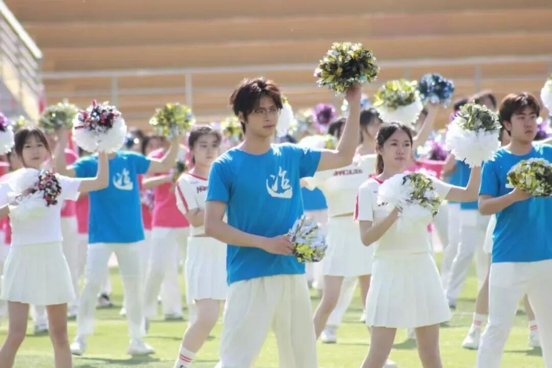 的表演正式拉开序幕。学子们手持彩穗花球意气风发、阔步登场,尽显蓬勃朝气;双龙威风盘旋、气势昂扬,与青春身姿交相辉映。